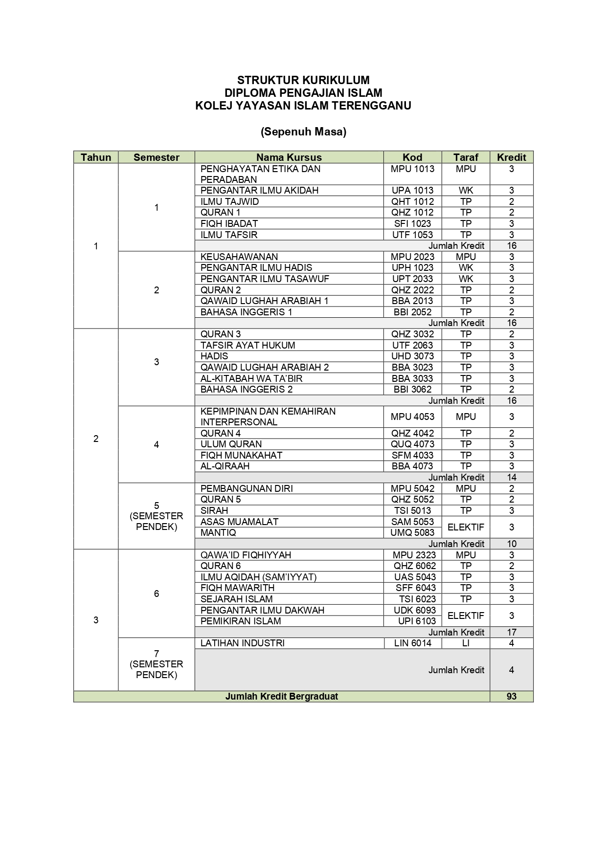 Diploma ini menggabungkan kesepaduan di antara pengajian akademik, al-Quran dan al-Sunnah serta pengajian Islam.