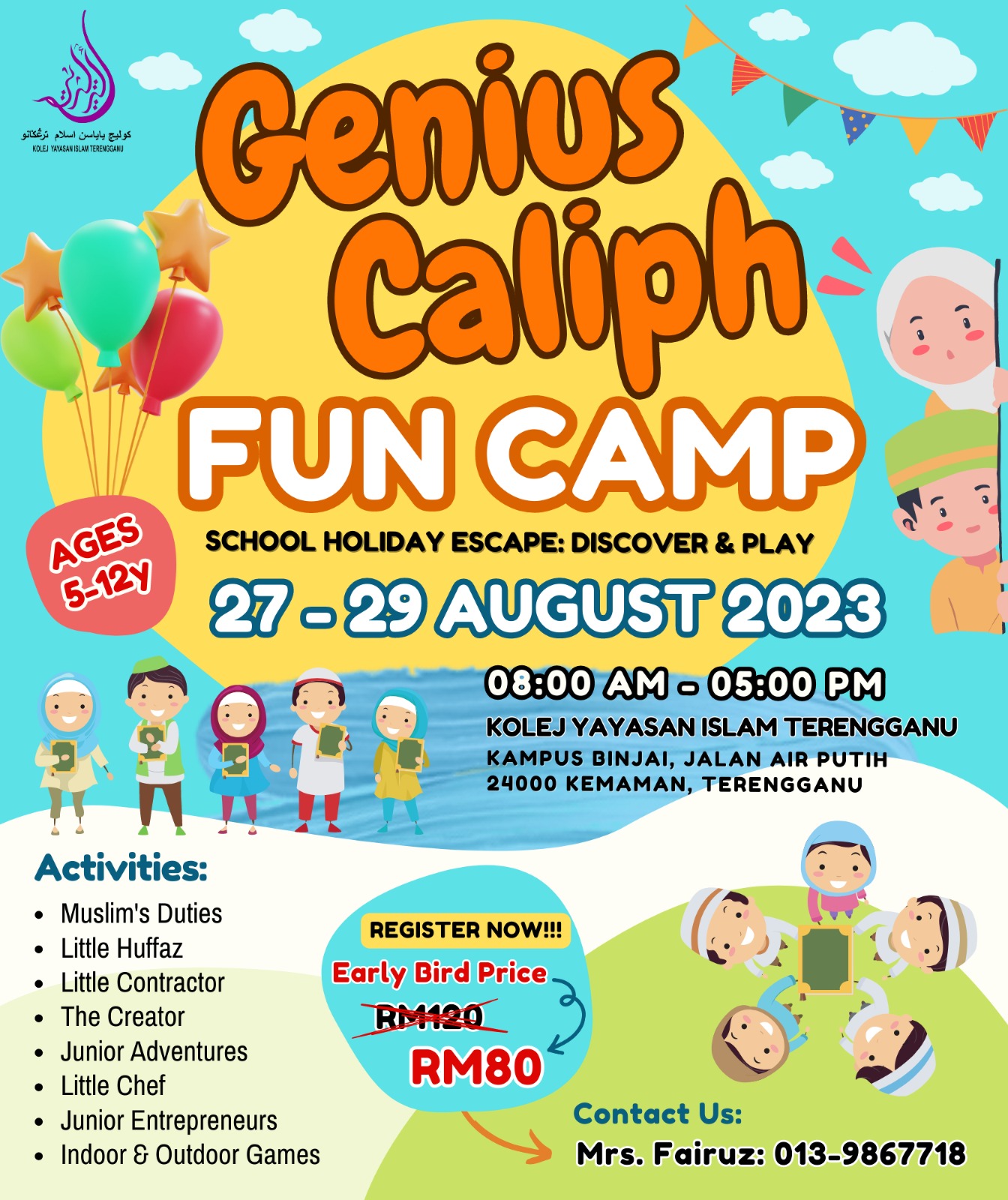 Berita baik untuk para ibu bapa ?? Anda sudah merancang aktiviti anak-anak pada cuti persekolahan tidak lama lagi? Jom bersama-sama kami di KYIT dalam program GENIUS CALIPH FUN CAMP! ???